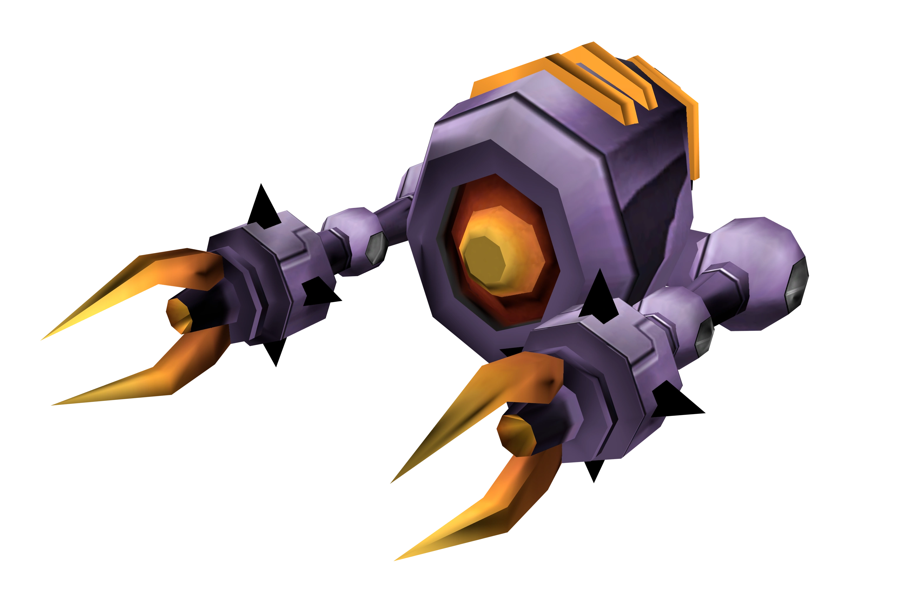 Repair drones are enemies in Going Commando, encountered at the Deep Space Disposal Facility in the Hrugis Cloud. They are purple-colored Megacorp robots used in the facility to repair its defense turrets. They have two arms with yellow pincers pointed forwards, which can repair hover turrets and fire lasers. There is also a single sensor on their front, and a single thruster on their rear.