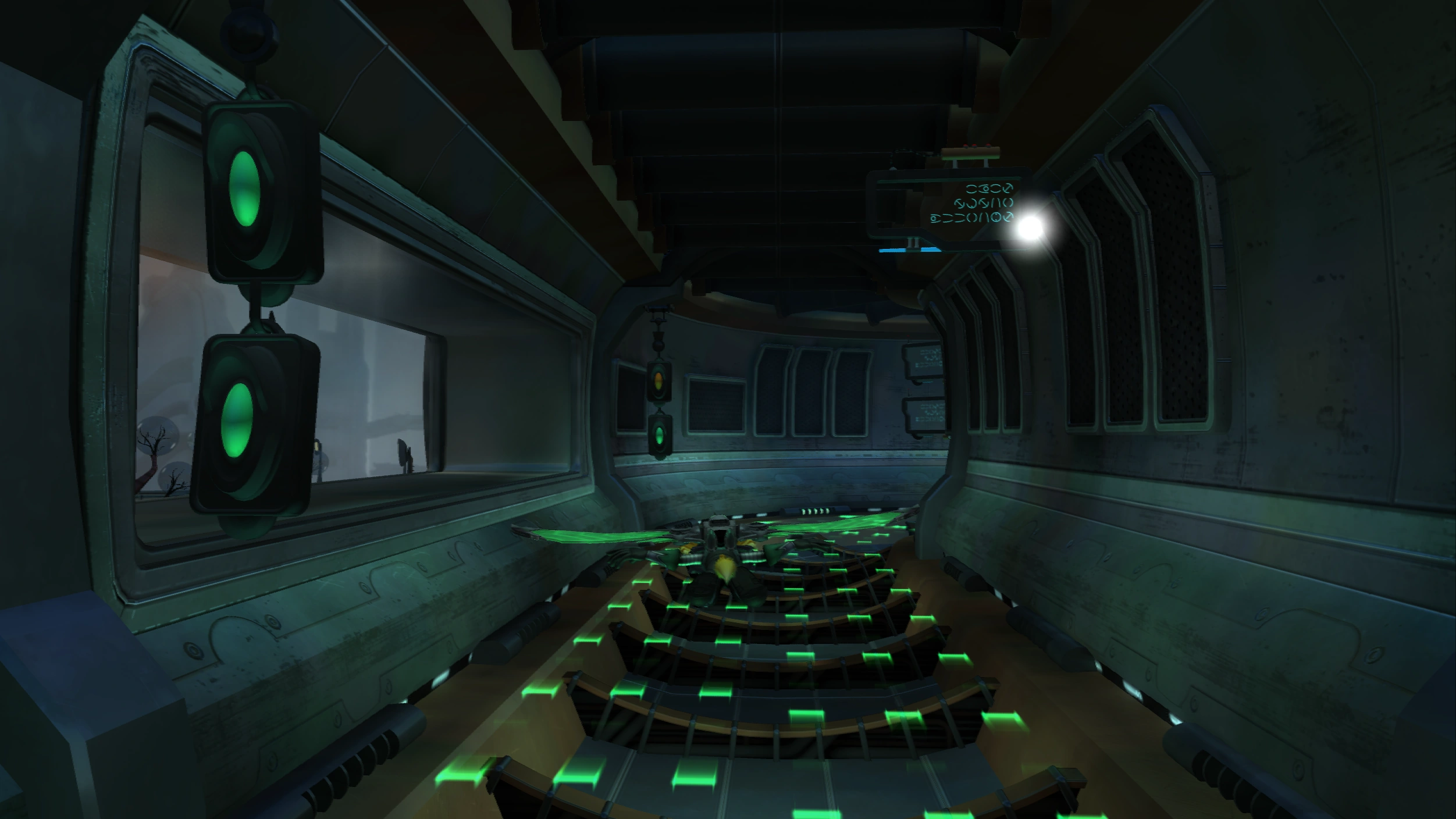 This time, you must use the Robo-Wings to get through an air tunnel expressway. The only dangers are air cars, electrical fences, and falling monitors that only become slightly threatening when they start to fall down the middle. Upon reaching the end you have to fight a pair of cragmite warriors, after which the mission concludes and a cutscene starts. The Cragpoles that appear typically with the defeated warriors are automatically killed during the transition to the cutscene.