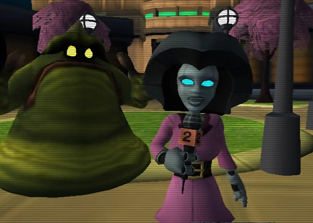 Throughout the galaxy, many civilian robots were seen with the same model as Gadgetron test dummies. These appeared at the Jowai Resort in the Pokitaru Tiki Longue and Karaoke Bar, as well as in the crowds for hoverboard racing on Rilgar and on Kalebo III. A female robot reporter, Juanita Alvaro, reported on events throughout the galaxy, along with Dallas Wanamaker. Mr. Zurkon was purchasable from Gadgetron vendors and could be upgraded to include Zurkon Jr.