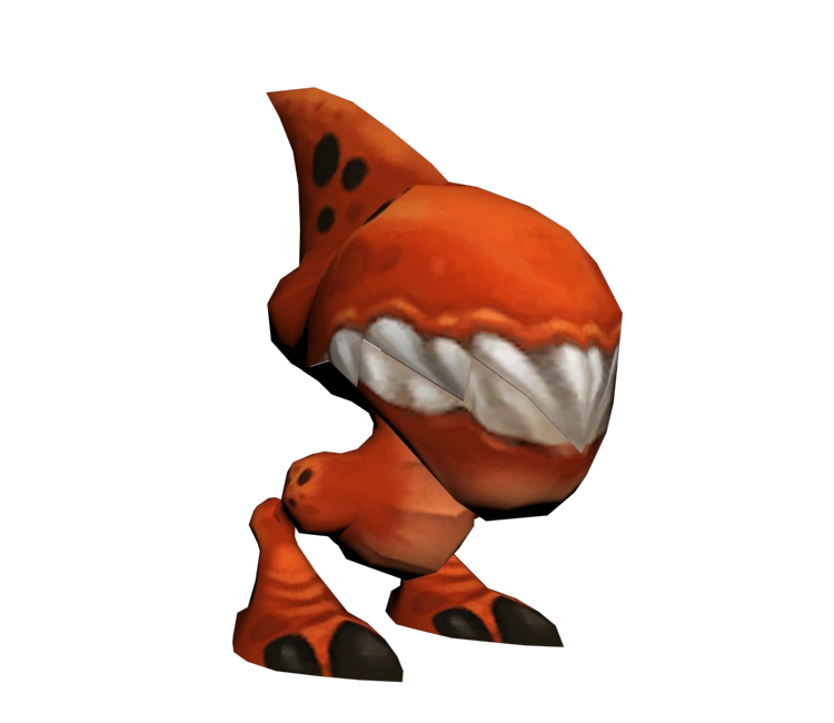 An older model of this enemy can be seen in the Insomniac Museum in Up Your Arsenal. This version has four legs, a larger shark fin, two eyes, and a white monotone physical appearance due to a lack of color.