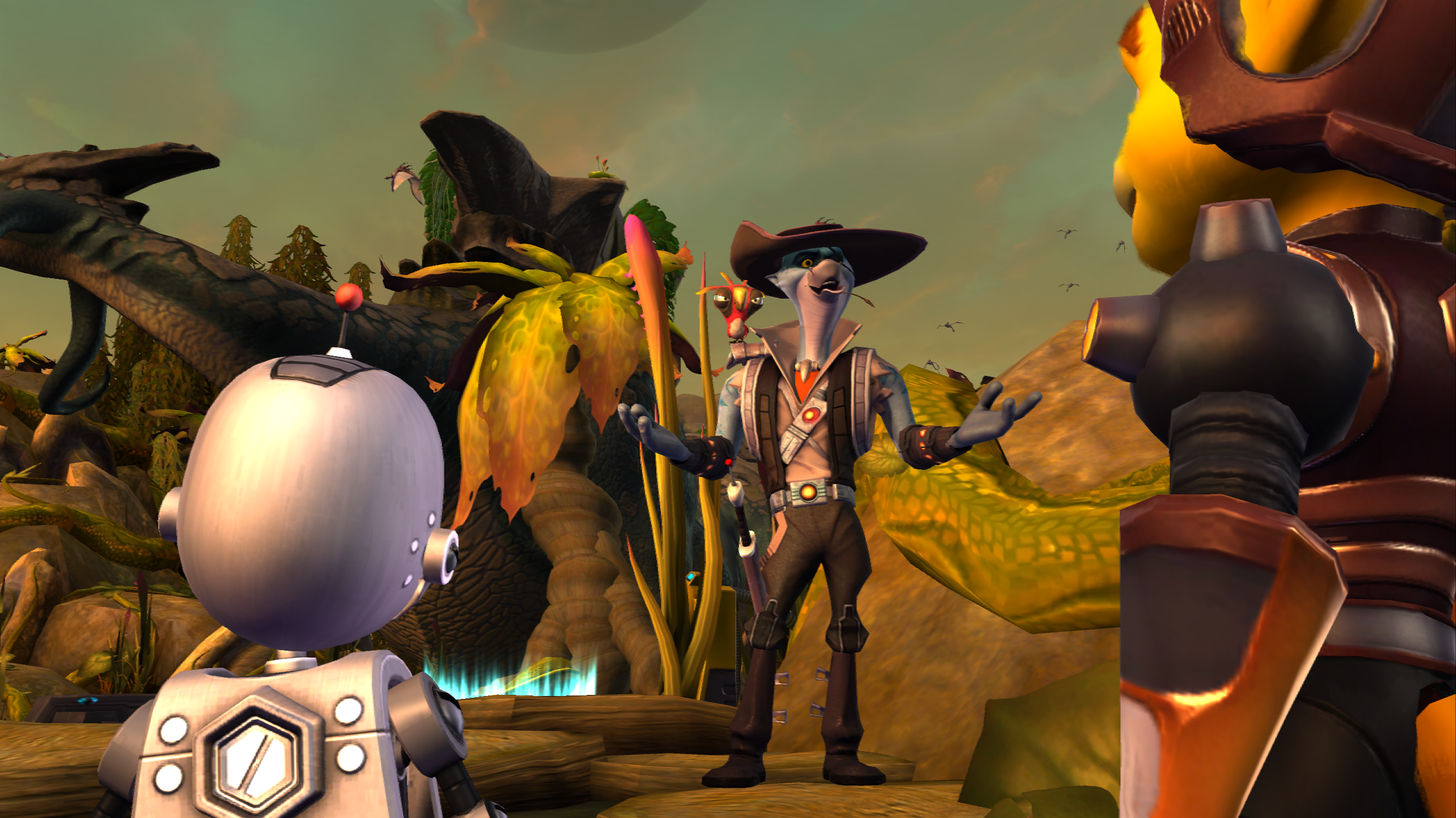 The Smuggler greeting Ratchet and Clank on Sargasso.