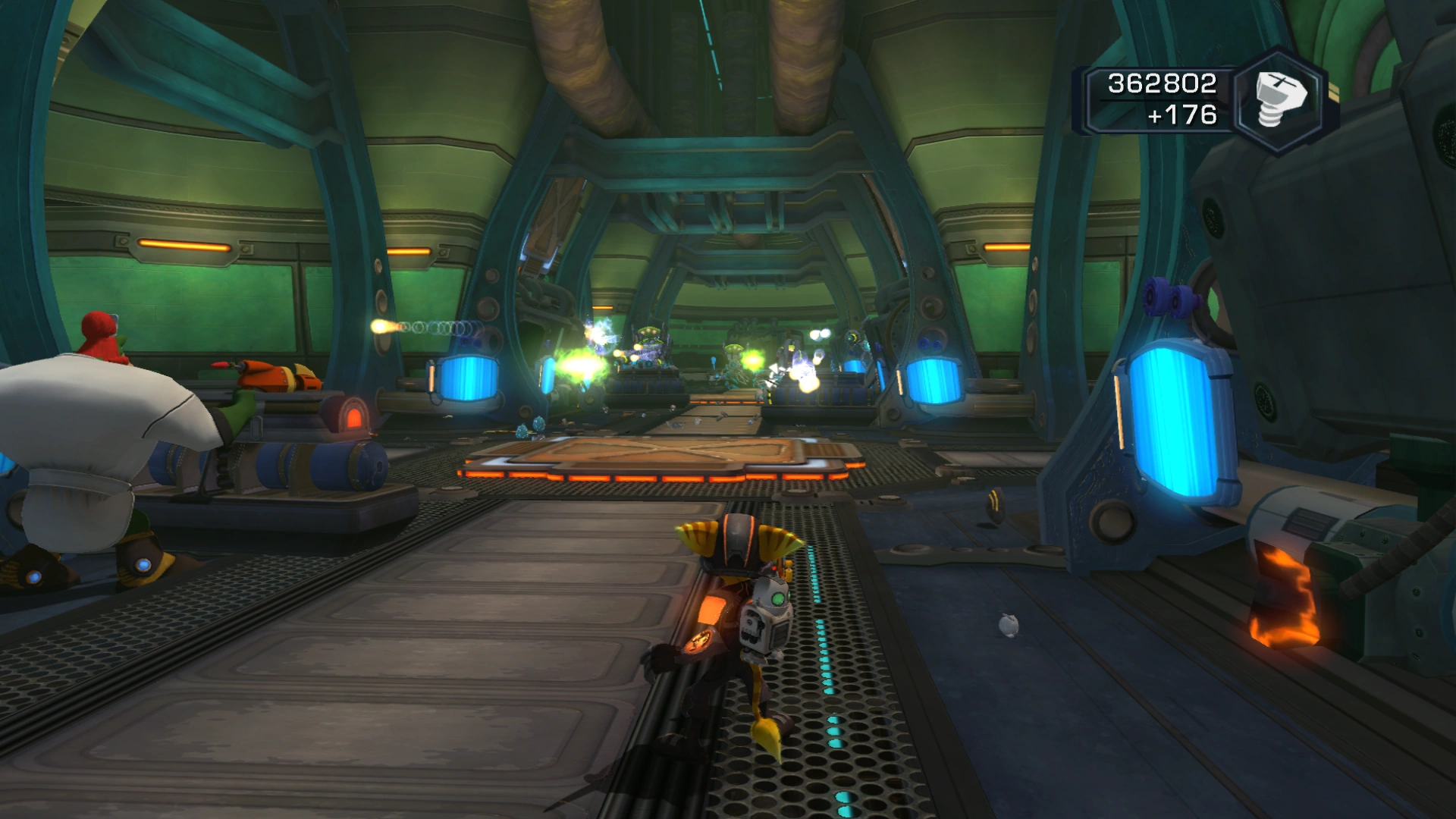 Defeat the few teratropes that appear after the walls start closing in, then wait until Qwark stops them. Follow him into the station and defeat the Splitterbots and Protoguards he will alert with his actions. A single Arc Striker will support the group from the rear, past which is a lone weapons vendor if you need to buy ammo.