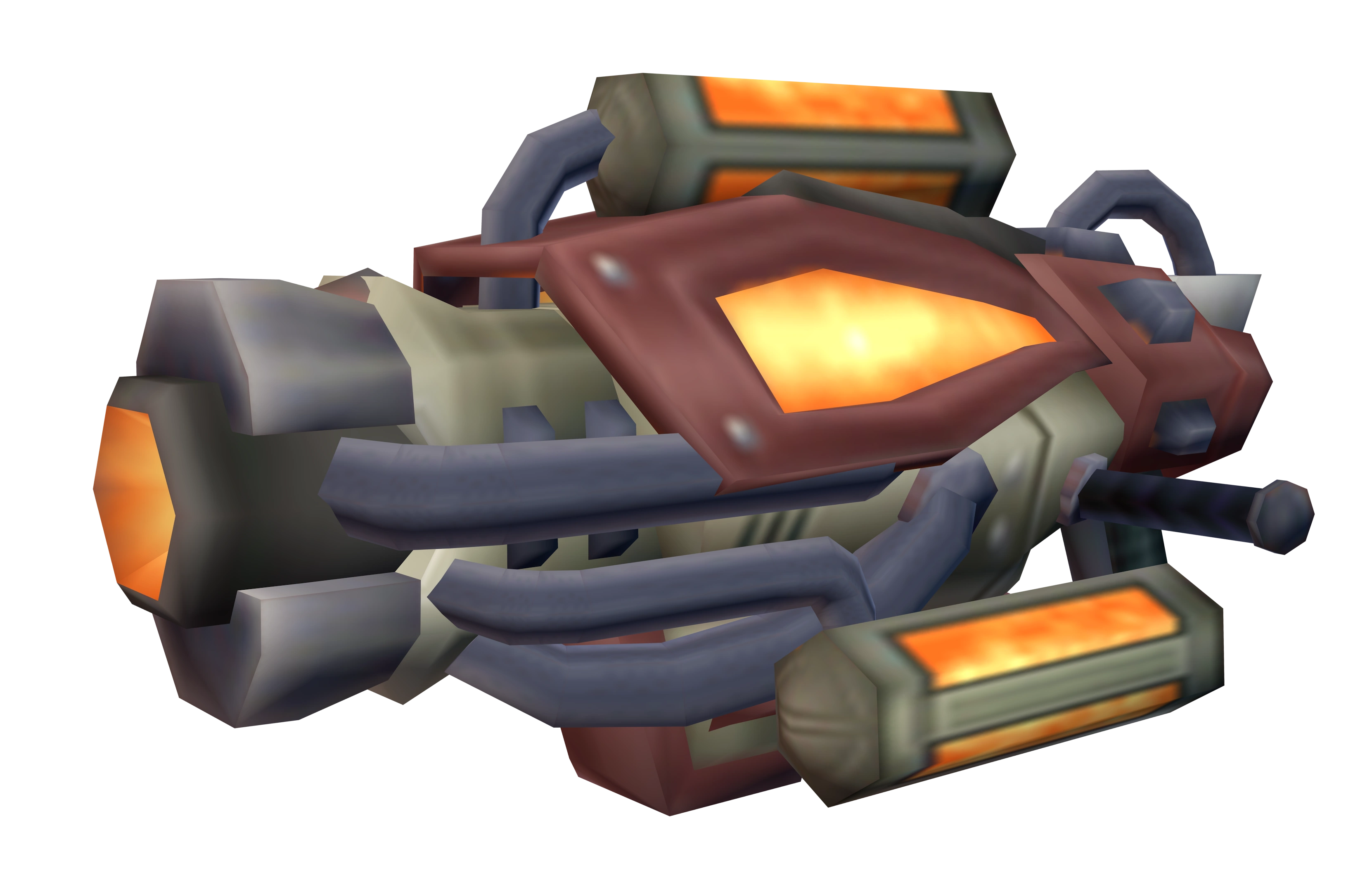 The Scorcher is made of pieces of a space cruiser,[1] and has a long nozzle from which the flame is fired. The Incinerator takes the plasma exhaust look from the Scorcher and feeds it directly back through the intake manifold to produce a highly concentrated flame jet stream.[2] It barely resembles the Scorcher.