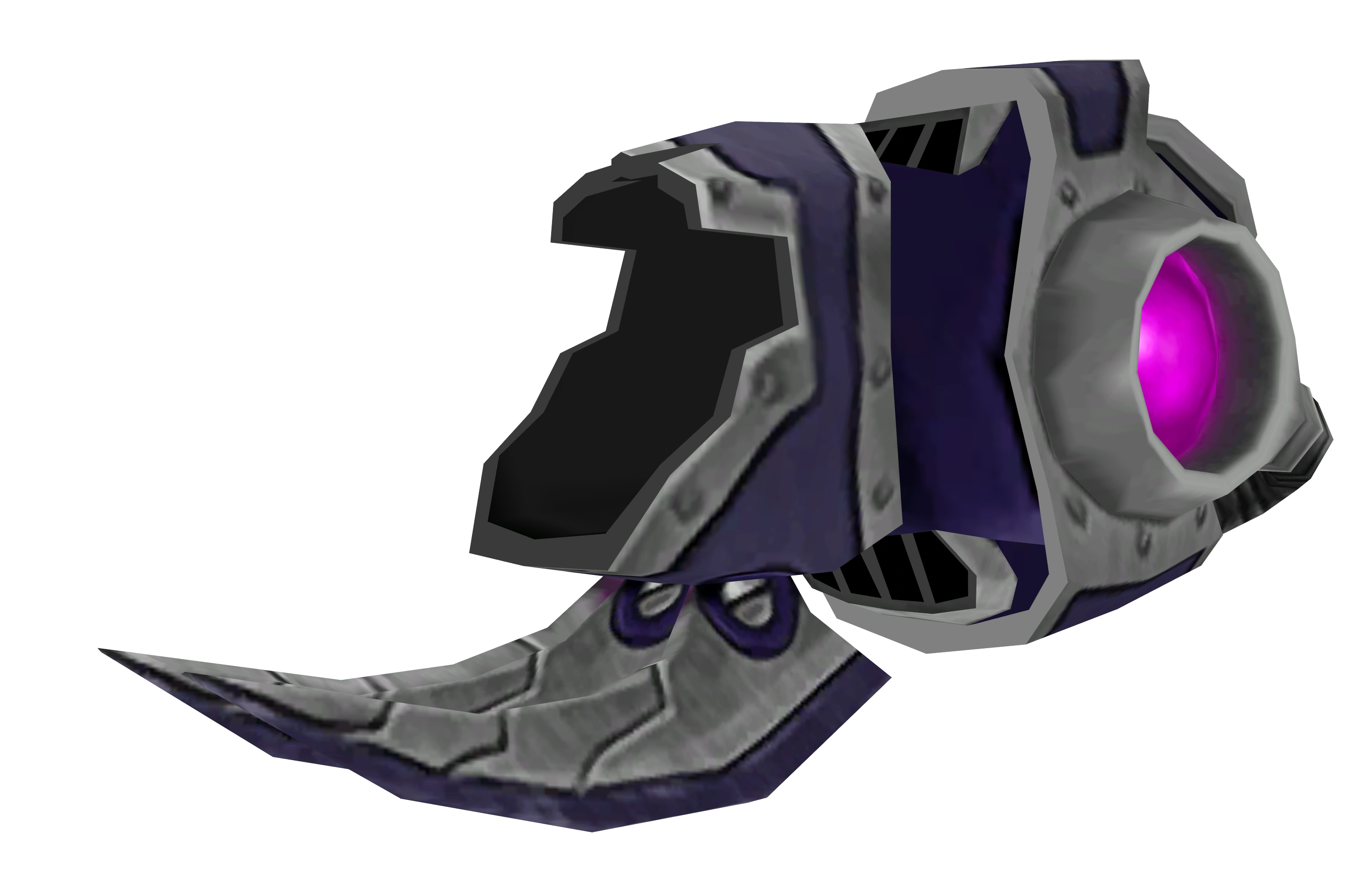 The Seeker Gun is a purple and grey wrist-mounted weapon. It is fairly short, featuring a large muzzle from which the missiles are launched, two energy highlights on its sides, and two purple and grey claws below. The seeker missiles are purple with two vertical claws that slowly hover forward before targeting an enemy.