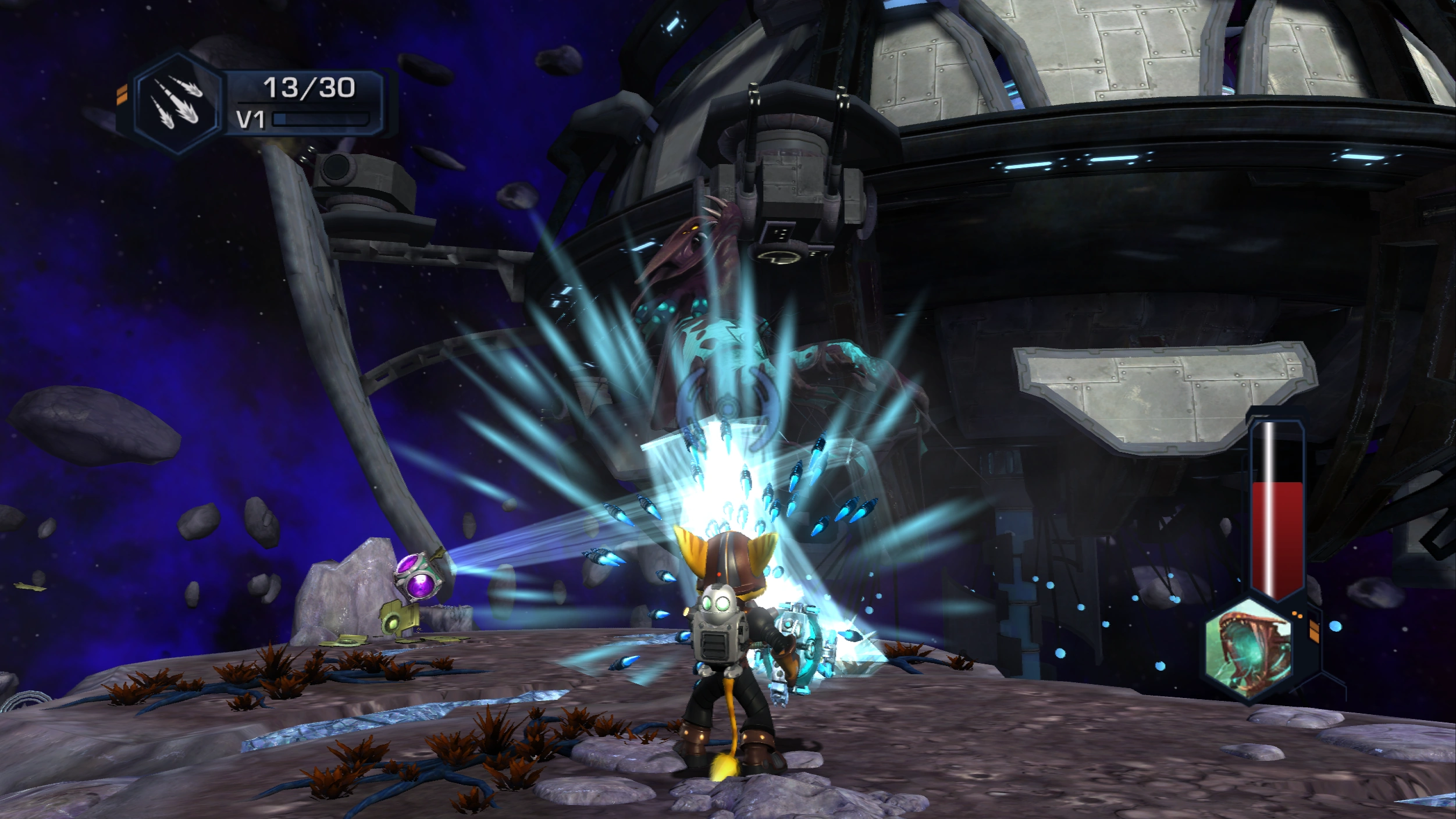 The Shard Reaper can be purchased upon reaching Mukow for 35,000 bolts, and can be upgraded to the Nitro Reaper with use, which fires shards that can freeze enemies. In challenge mode, the Omega Nitro Reaper can be purchased for 7,500,000 bolts.