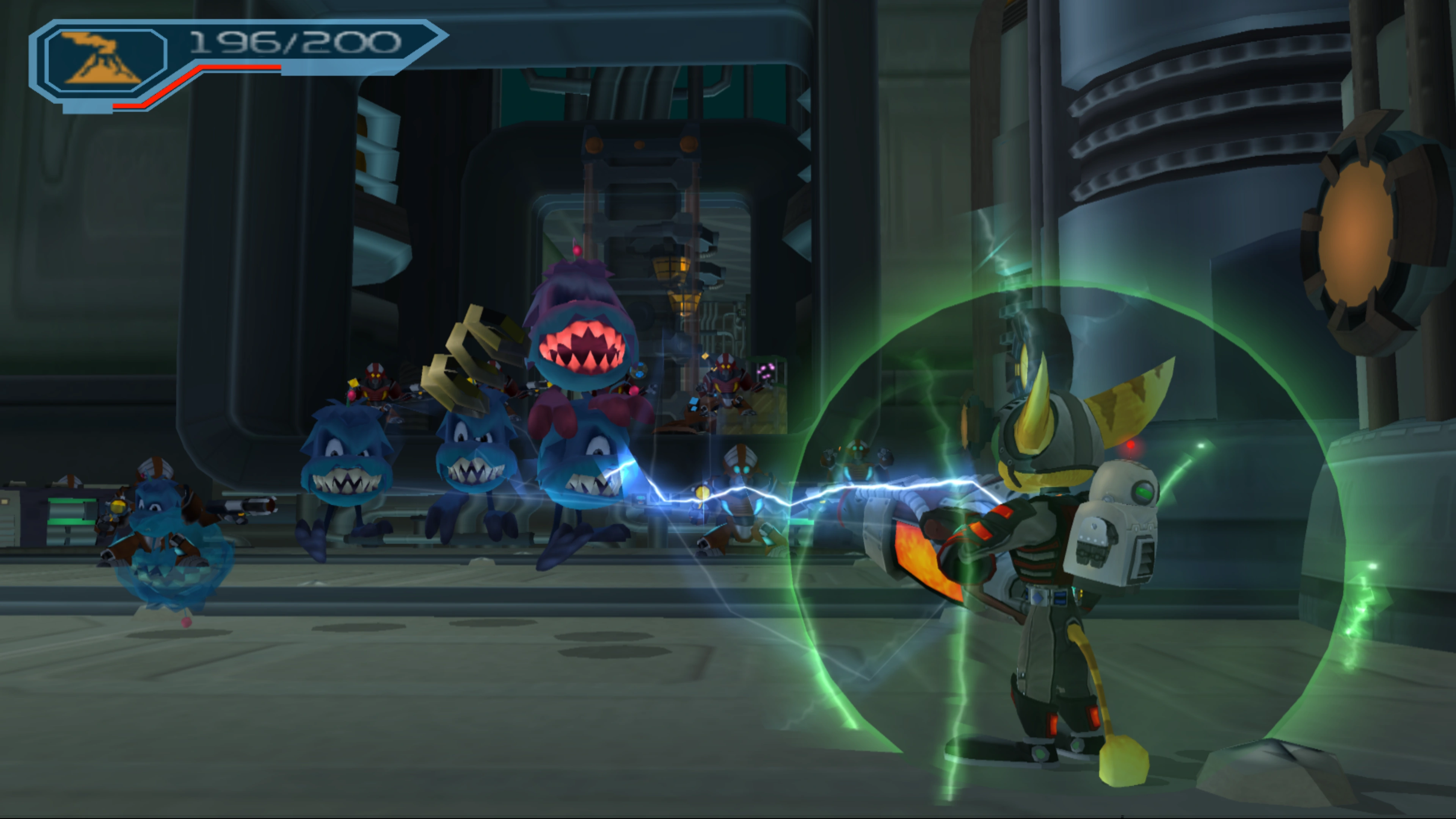 The Shield Charger deploys around Ratchet when selected, allowing him to use any other weapons simultaneously, and then protects him from damage. A flaw with the shield is that damage from the attack that breaks it will damage Ratchet. There is little reason not to deploy a Shield Charger in more difficult battles once it is acquired, as it provides a strong defensive boost and saves nanotech. The player should still avoid taking damage to keep the shield up for as long as possible, however, meaning despite it damaging enemies, it is best not to use it offensively, aside from when upgrading it to the Tesla Barrier, where it needs to defeat enemies to upgrade.