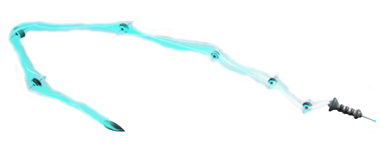 The Shock Ravager is held by a short grip, from which a large, light blue, and electric whip extends when swung. When used, Ratchet swings it over his head to crash it down on enemies. It can be upgraded to the Lightning Ravager with use, whose whip is bright red rather than blue, and its electricity more volatile.