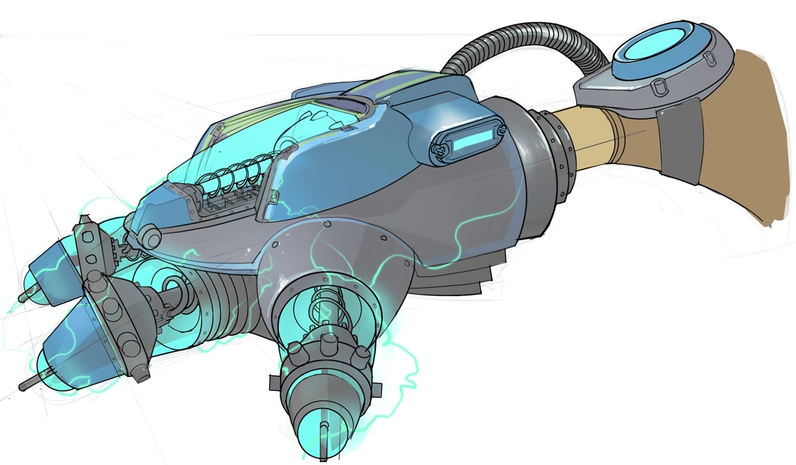 The Lightning Ravager upgrade was conceived as a bath time toy and repurposed to the weapons division on advice of GrummelNet's legal department. It was GrummelNet's only weapon in the Polaris Galaxy to harness the power of quantum lightning, and included a quantum chaining feature.[1]