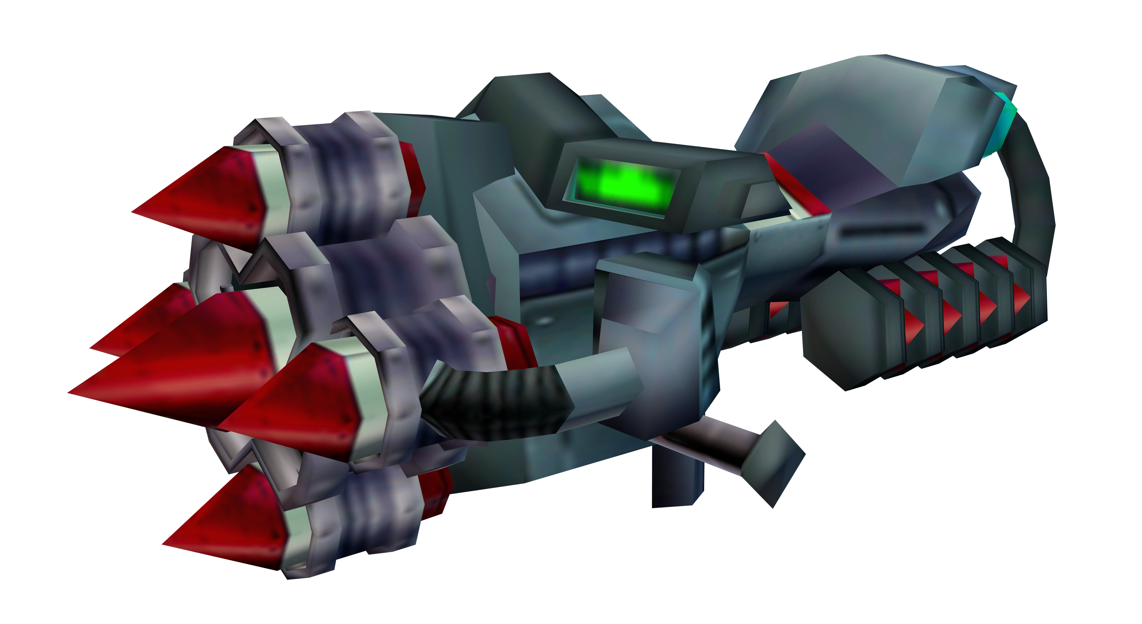 The Shock Rocket is the most useful weapon in the game after it is acquired right until the end, though upgrading it is crucial. It upgrades to the Electro Rocket, which causes it to electrocute nearby enemies on impact, and will also slightly but continuously damage hit targets for a few seconds afterwards. Its Lock-On Mod is a minor luxury pickup that can be useful against single targets, while the After Shock Mod damages enemies along the rocket's flight path, improving the weapon's ability to damage additional targets.