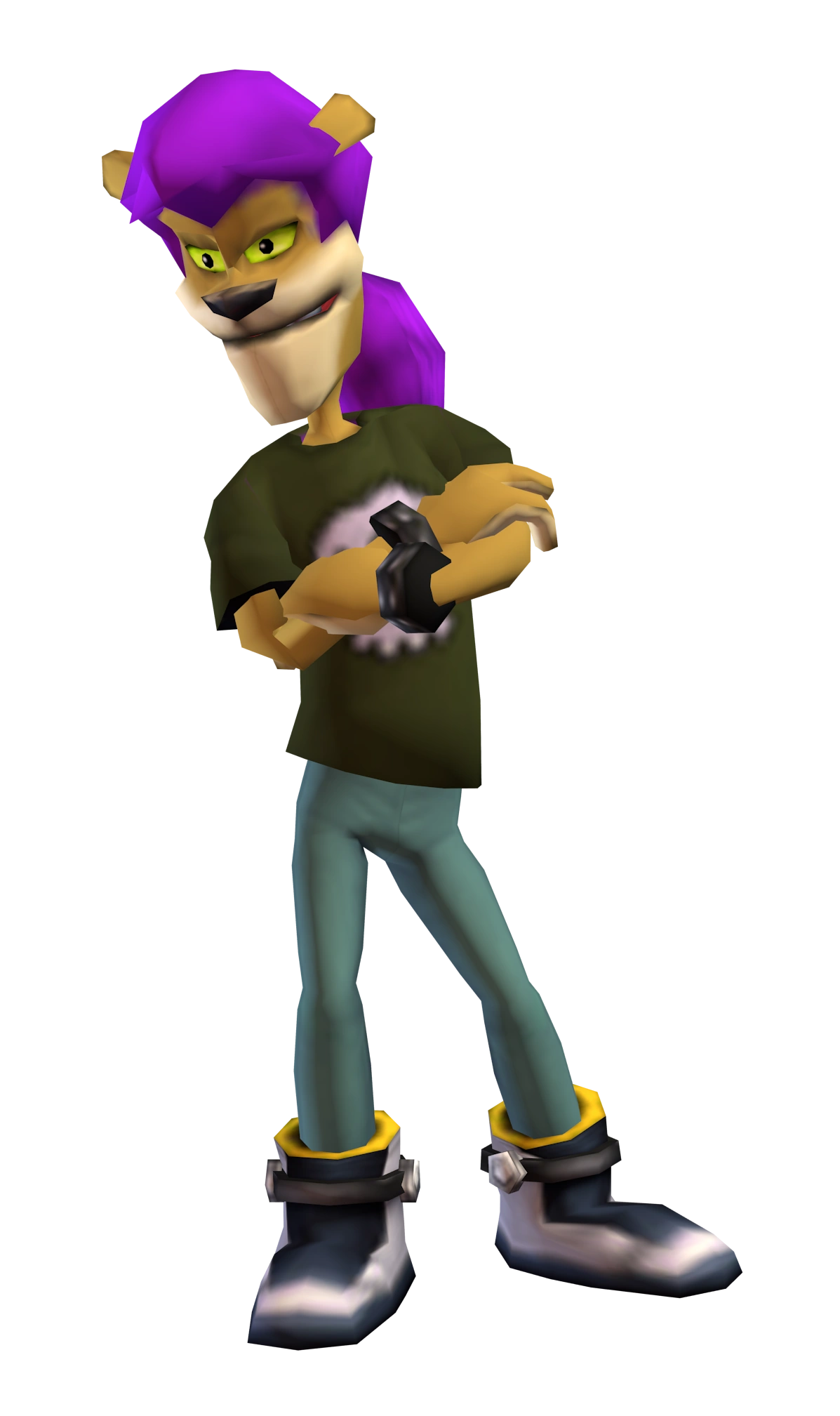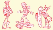 The Skyboarder is a character in Size Matters. He is a humanoid lion-like skyboard racer, who has purple hair with a ponytail, wears blue jeans and a black T-shirt with a three-eyed skull logo. He races in uncharted corners of the Solana Galaxy, including planet Kalidon which has not appeared on most galactic maps,[1] and the ruins of the Medical Outpost Omega, shortly after its destruction. He also cheats at his races, having been accused of using nano-roids and illegal alternafuel by the racing committee,[2] and attempting to use the Polarizer to enhance his skyboard.