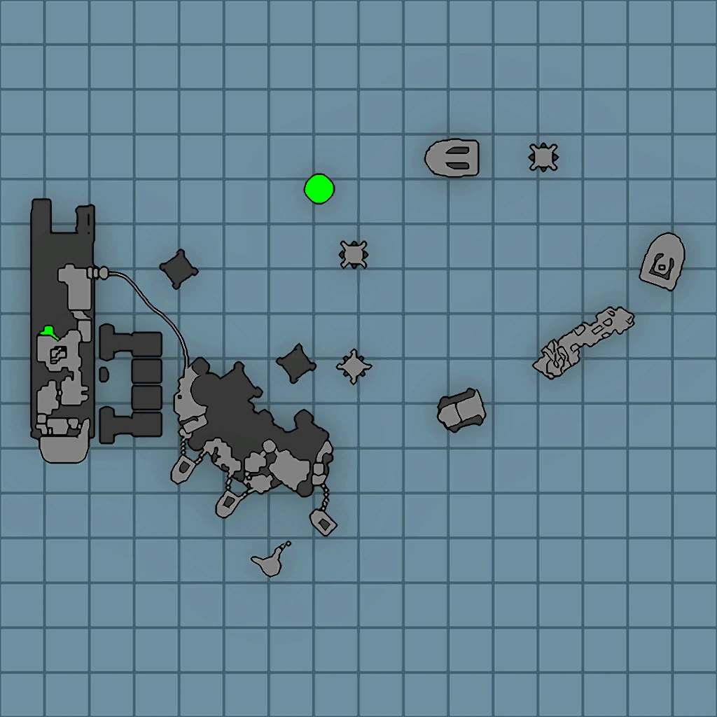 Around the main structures, the facility is made up largely of freighter ships and a few floating platforms. The biggest freighter ship is the warehouse ship, with a huge number of crates stacked inside. Other freighter ships are small docked ships, which serve as a platform, and long train-like ships carrying cargo. Though the crates in the structure contain Protopets,[5][2] Megacorp are secretive as to their contents; the crates have a logo resembling the two-headed snapper, and Megacorp claimed to the Thug Leader that they contained paperweights.[3]