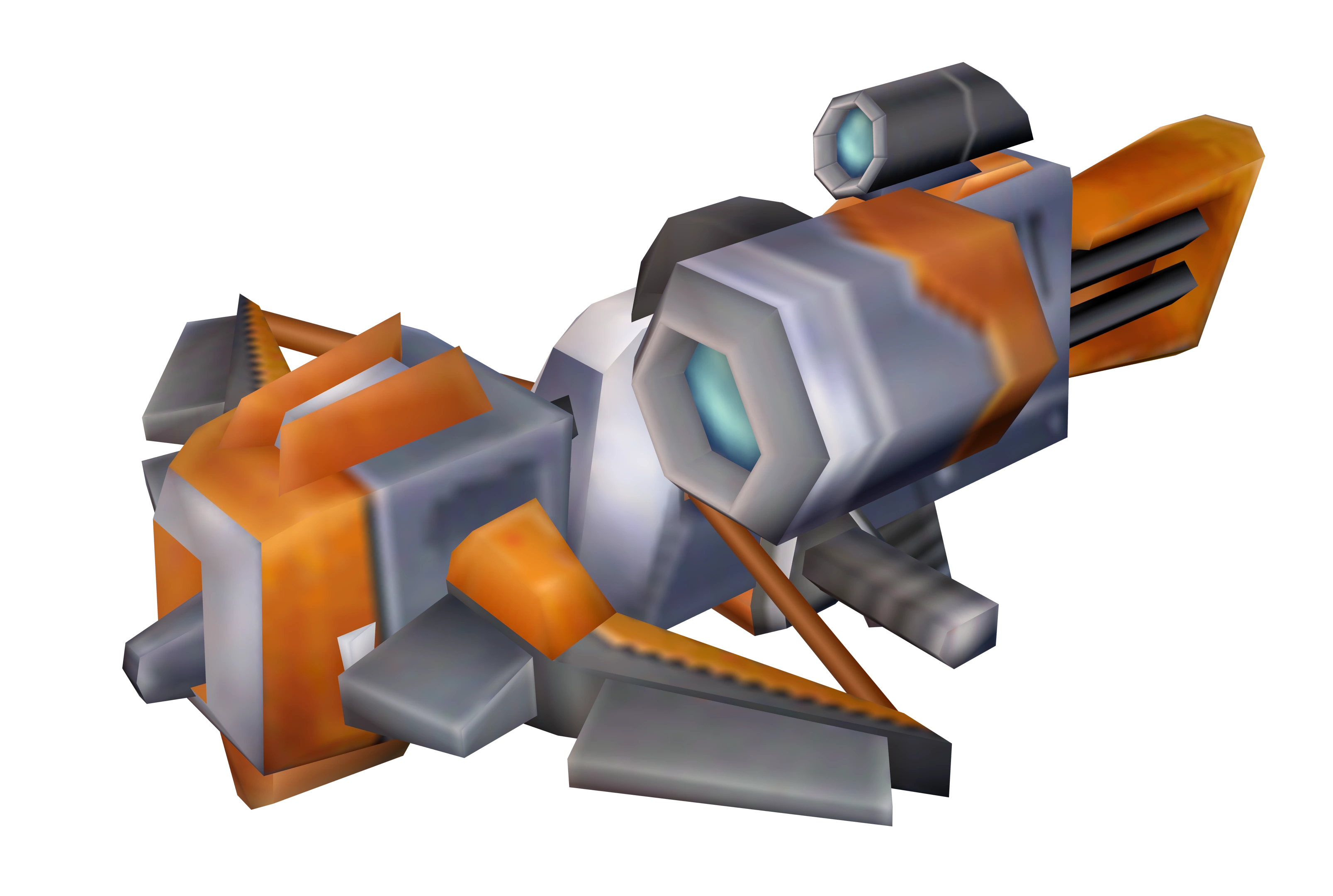The Sniper Mine, which was taken from the shelves of Gadgetron's historical weapons lineup, uses the form of an ancient crossbow combined with the punch of Gadgetron's latest ballistic technology, firing a tachyon-driven self-propelling dart.[1] The Deadeye Mine's design is much bulkier and more metallic. It instead uses a pocket-space recursion module in its dart that self-detonates when triggered, releasing a series of tachyon bomblets after the initial explosion.[2]