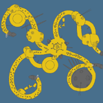 In "Qwarkography, Ch. 4", Qwark then arrived and told a story to Barney of him rescuing space nun and orphan buses from the giant kudzu and hostile fungal pirates.[8] After he left the graveyard, his ship caught onto a rooted spore, revealing an Ultra-Mech Pad for Clank to transform to Giant Clank. In "Escape the Kudzu", Clank used his Giant Clank form to leave through the surrounding Quasar Fields to chase Klunk. After defeating the MegaRock trying to keep him from leaving, Clank caught up to Klunk on Hydrano.