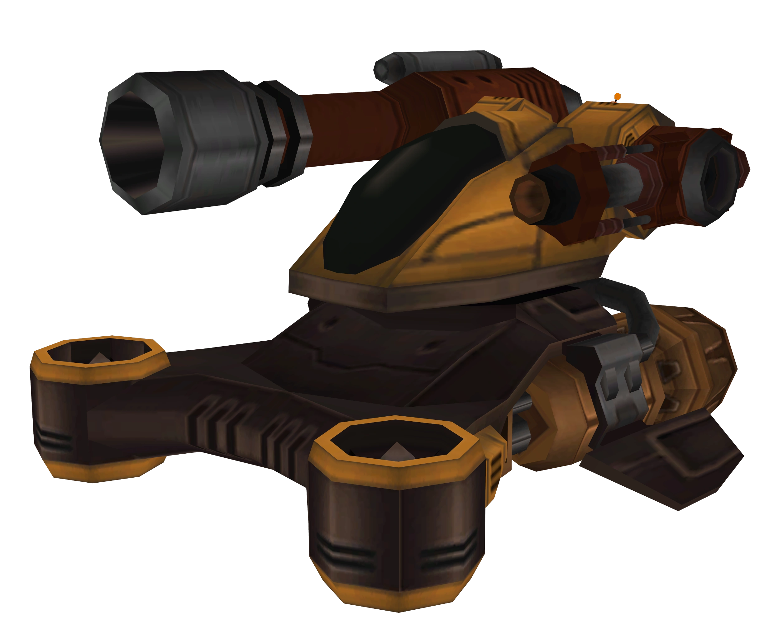 Tank bots[1] are enemies in Up Your Arsenal. Only two are encountered, one in the challenge "Meet Courtney - Gauntlet" (renamed to "BBQ Boulevard" on replays) on the Annihilation Nation, and one during the mission "Find Dr. Nefarious" alongside the tyhrranoids. The tank bots are imposing, heavily armored vehicles that hover from the ground, and fire rockets or a short flamethrower.