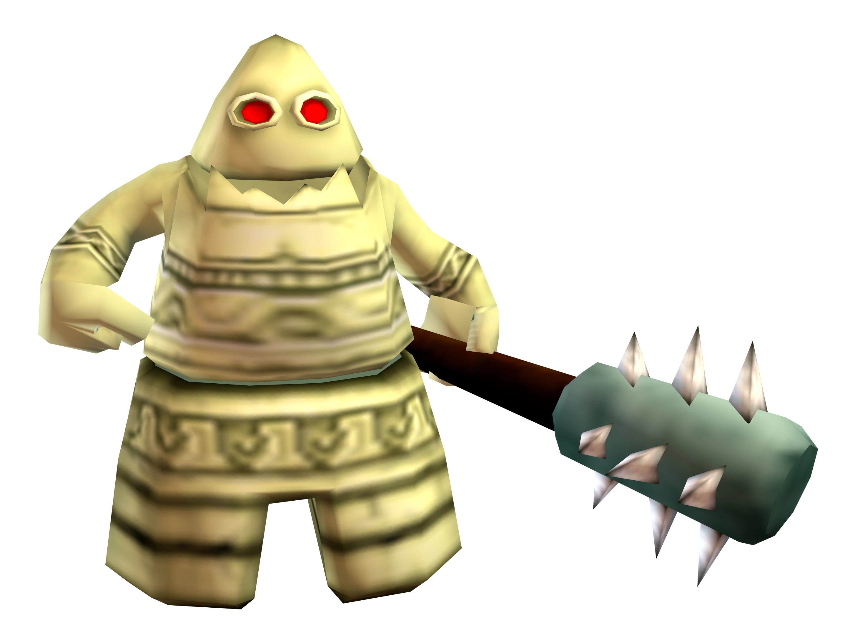 The guard statues patrol an area before recognizing an enemy; afterward, they appear surprised and shuffle toward the enemy to swing their mace. Both their movement and their attacks are very slow, meaning Clank and the gadgebots could dispatch them quickly.