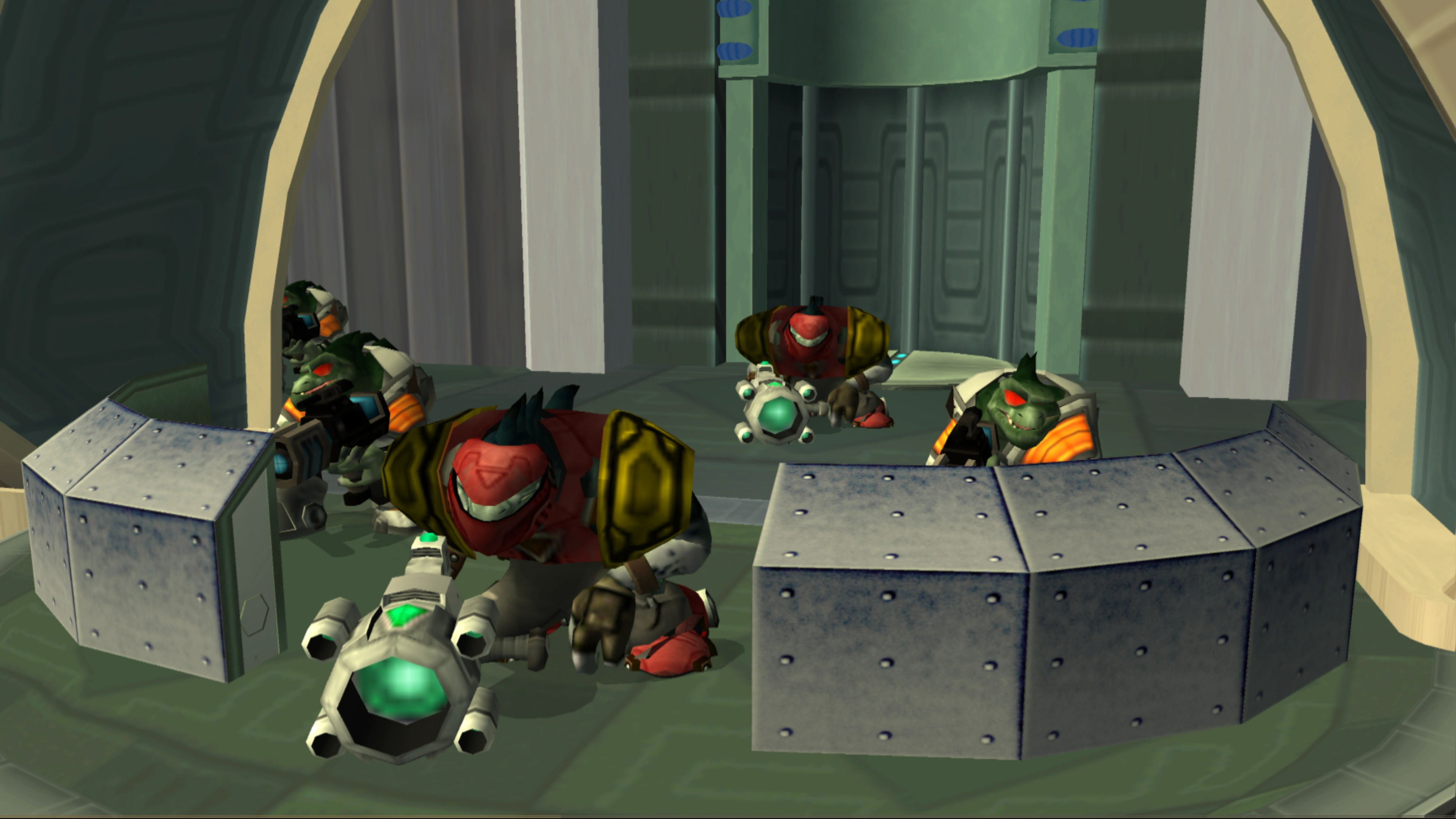 A group of Henchmen attacking Ratchet.