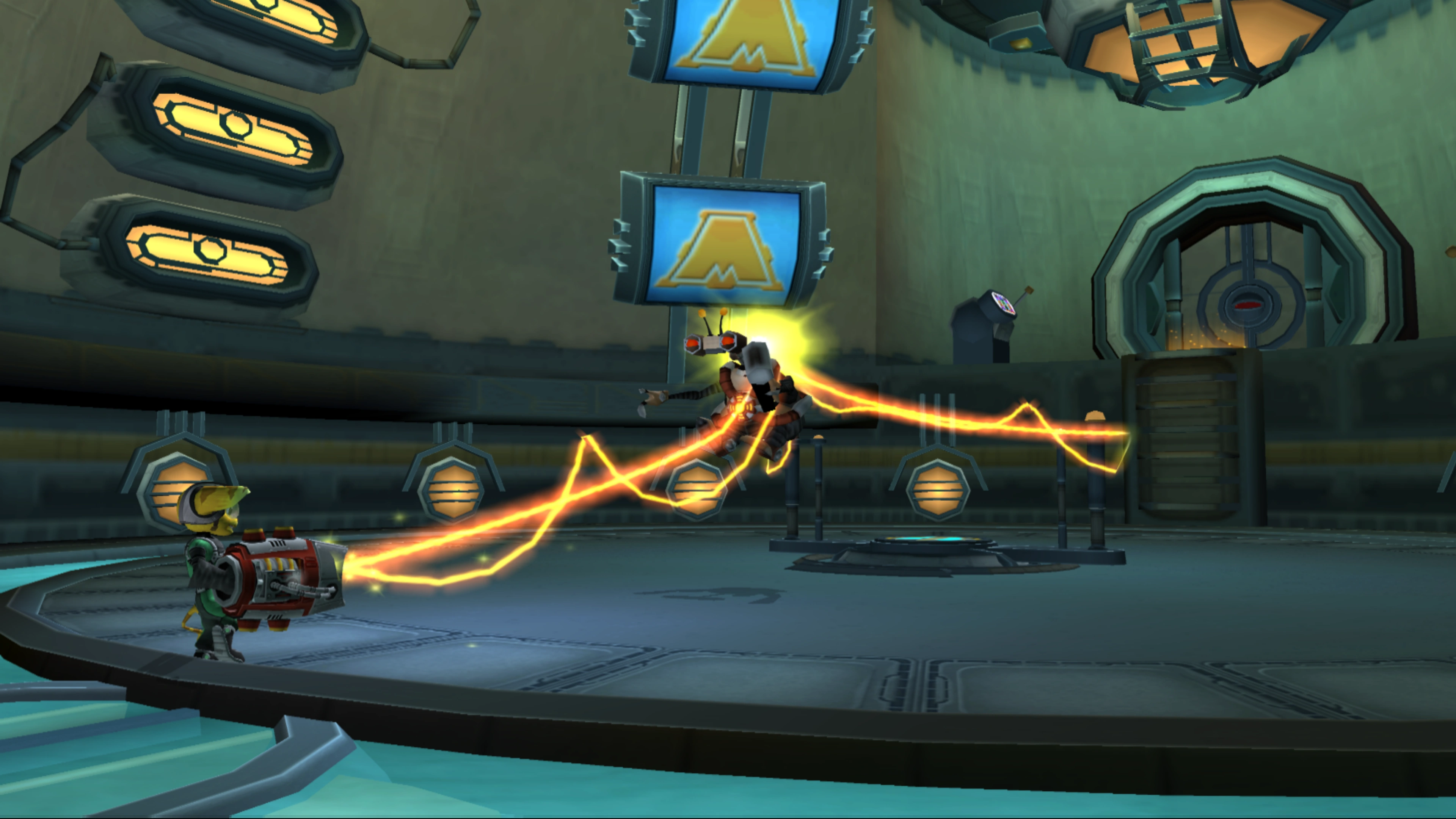 Ratchet using the Tractor Beam at the Maktar Resort.
