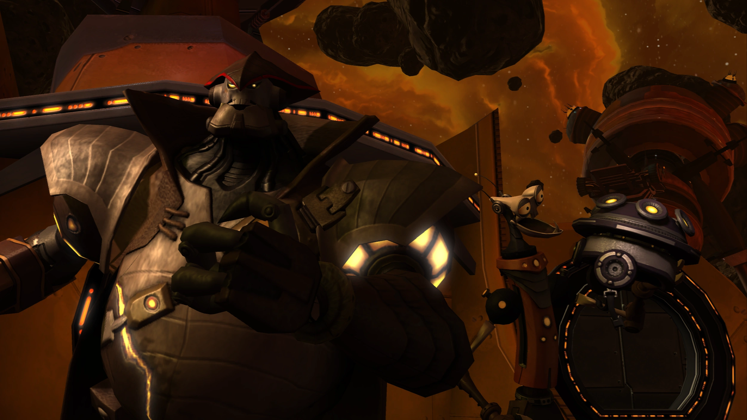 In "Defeat Captain Slag", Ratchet and Clank eventually found and confronted Slag. When Slag was defeated, his head was blown off by Ratchet, causing Rusty Pete to briefly become upset, before then crowning Ratchet their new captain. Ratchet and Clank then argued over what to do with the Dimensionator, at which point Captain Qwark arrived and took it, using a shuttle to throw it into a black hole, not knowing that the shuttle had actually set course for the cragmite homeworld of Reepor.[4]